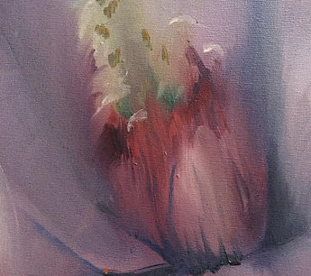 Fleurs : Orchidées, étamines, graines (symbolique de vie), Fleur-femme, Fleur-vêtement : matière éthérée, fluide, qui voltige sur la toile et nous enveloppe de ses émotions. ( Livret "Orchidées").